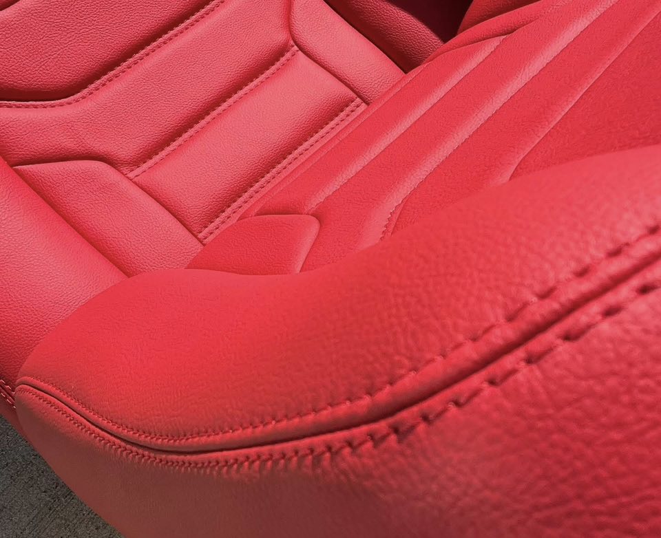 – Premium handcrafted padded Red Vinyl with your choice of contrasting seam stitching and grommet finish